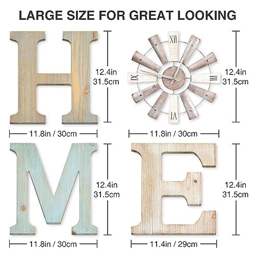 Measuring 12.6”H x 12”W x 0.5” for the letters and a standout 12.6" diameter for the windmill clock, this decor piece is the perfect size for any configuration. Weighing in at 6.6 lbs, each letter features a handy sawtooth hook on the back, and we include screws and nuts for effortless hanging—making your decorating experience seamless and enjoyable!