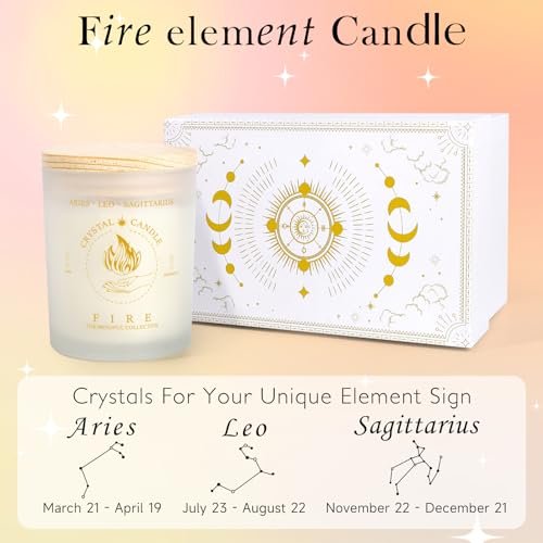 Zodiac Birthday Gifts for Her: Lavender Soy Candles with Healing Crystals – Fire Signs (Aries, Leo, Sagittarius)
