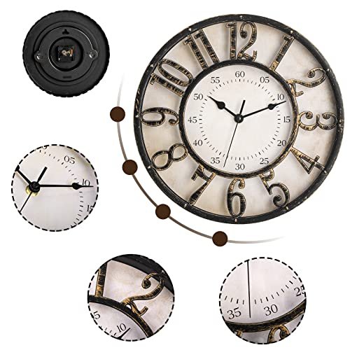 ZOOFOX 12-Inch Retro Wall Clock: Silent Battery-Operated Quartz Clock with 3D Arabic Numerals for Home, Office, Living Room, and Kitchen.